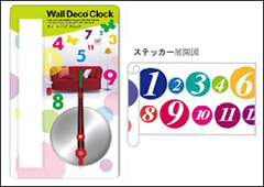 ウォールデコクロック」は、文字盤数字自体にデザイン性を持たせたステッカーやアーティスティックなデザインのステッカーをクロックと組み合わせた、これまでにないウォールステッカーとクロックを融合させた商品です。